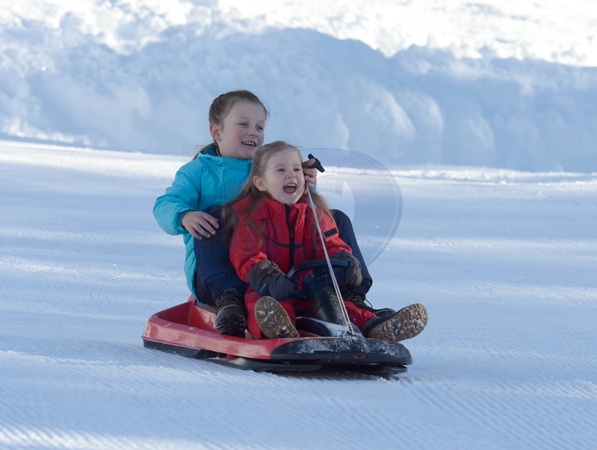 Ksiaze Frederik i Ksiezna Mary z dziecmi na sniegu w Szwajcarii