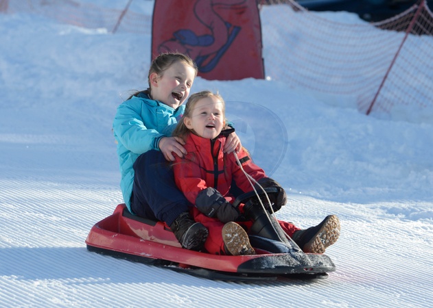 Ksiaze Frederik i Ksiezna Mary z dziecmi na sniegu w Szwajcarii
