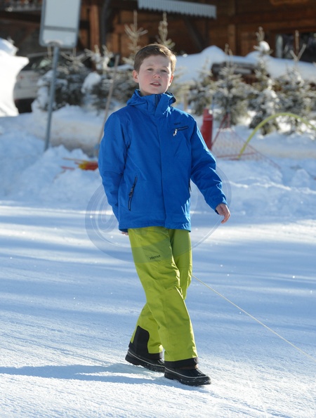 Ksiaze Frederik i Ksiezna Mary z dziecmi na sniegu w Szwajcarii