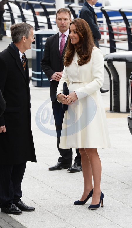 Ksiezna Kate w bialym plaszczyku odwiedzila szkole w Portsmouth