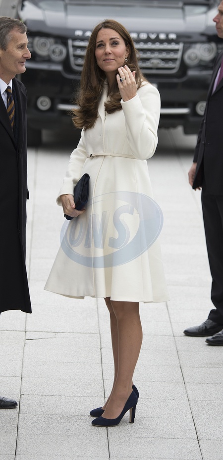 Ksiezna Kate w bialym plaszczyku odwiedzila szkole w Portsmouth