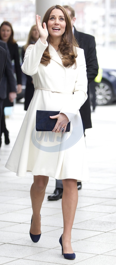 Ksiezna Kate w bialym plaszczyku odwiedzila szkole w Portsmouth