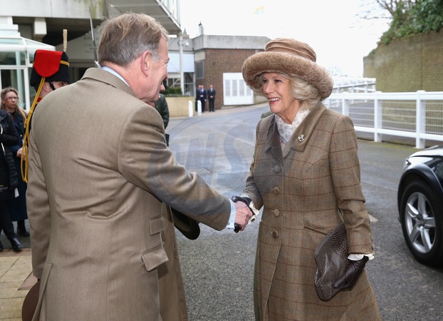Ksiezna Camilla w kapeluszu z futerkiem na Royal Artillery Gold Cup