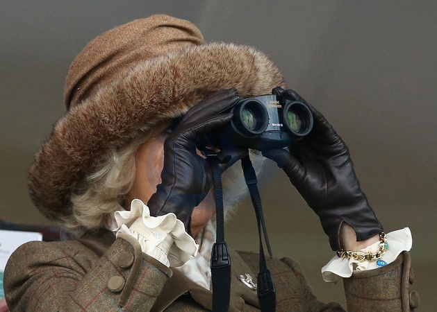 Ksiezna Camilla w kapeluszu z futerkiem na Royal Artillery Gold Cup