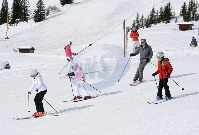 Krol Holandii Wilhelm Aleksander z rodzina na nartach w Austrii