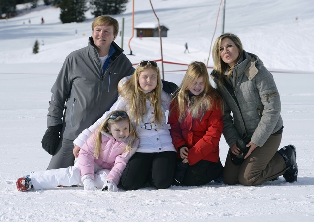 Krol Holandii Wilhelm Aleksander z rodzina na nartach w Austrii