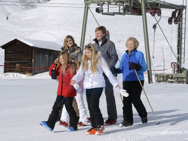 Krol Holandii Wilhelm Aleksander z rodzina na nartach w Austrii