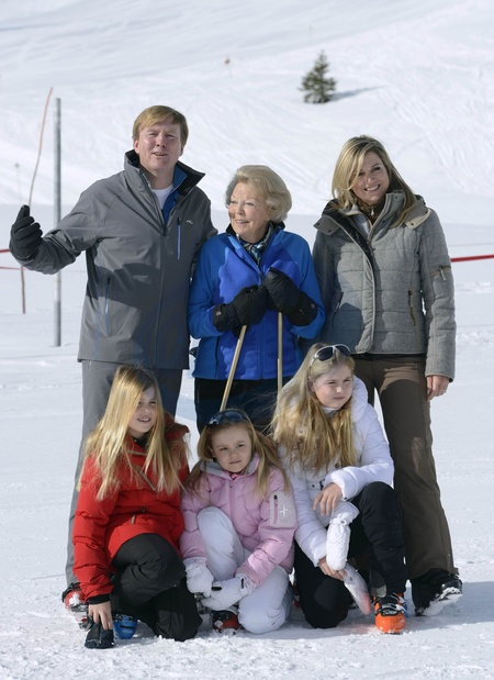 Krol Holandii Wilhelm Aleksander z rodzina na nartach w Austrii