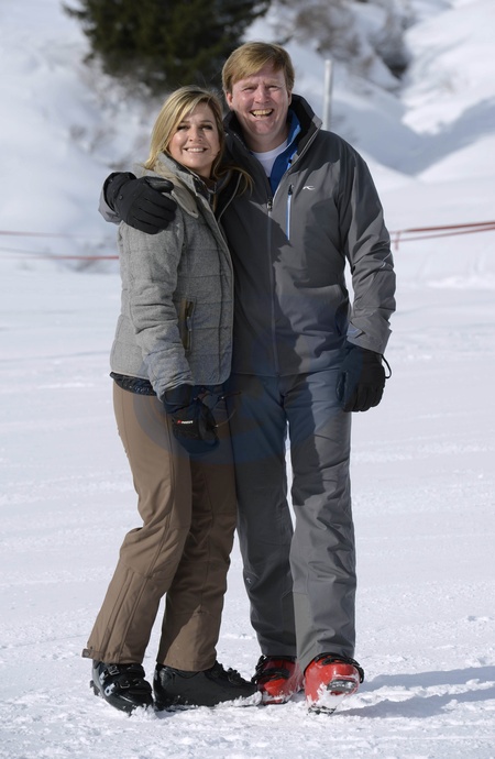Krol Holandii Wilhelm Aleksander z rodzina na nartach w Austrii