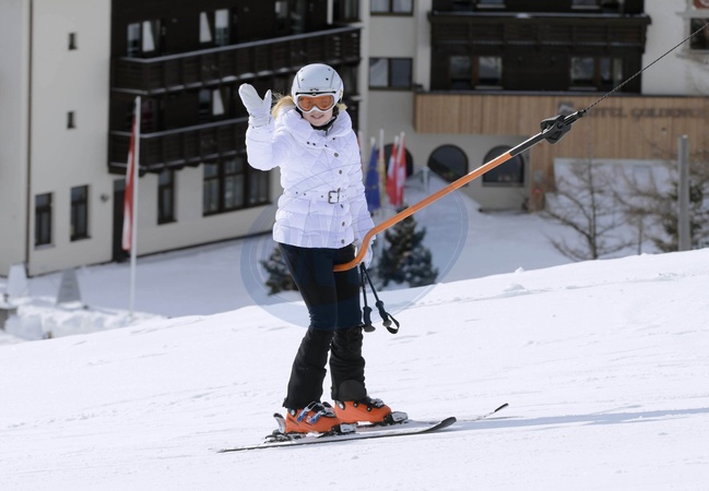 Krol Holandii Wilhelm Aleksander z rodzina na nartach w Austrii