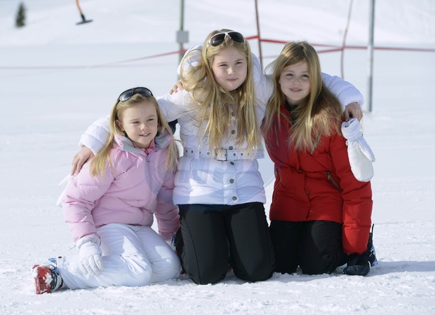 Krol Holandii Wilhelm Aleksander z rodzina na nartach w Austrii