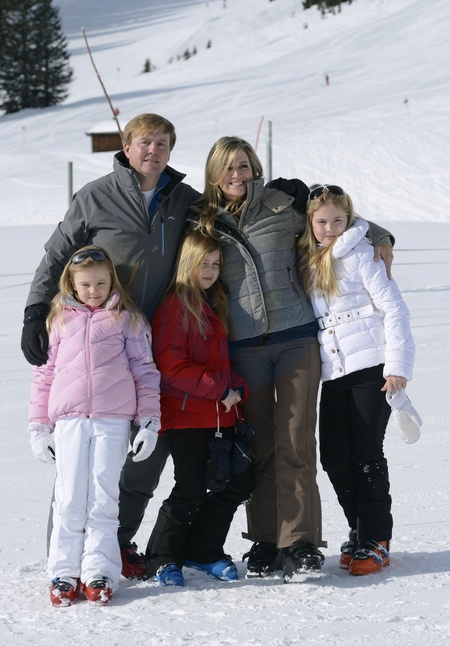 Krol Holandii Wilhelm Aleksander z rodzina na nartach w Austrii
