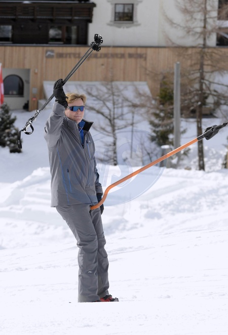 Krol Holandii Wilhelm Aleksander z rodzina na nartach w Austrii