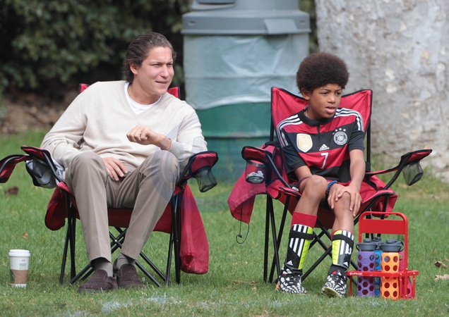 Heidi Klum z chlopakiem oglada dzieci podczas meczu