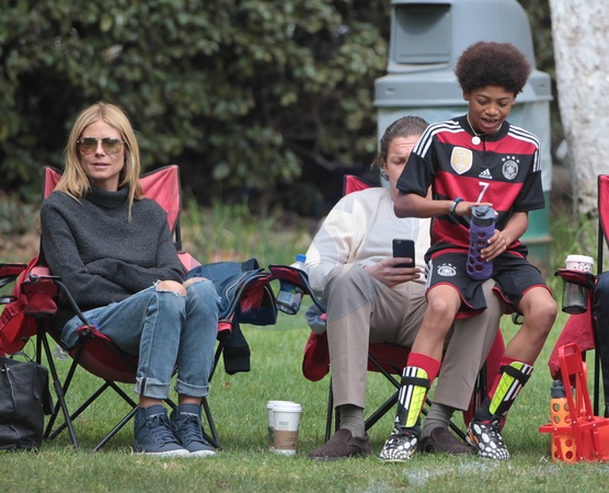 Heidi Klum z chlopakiem oglada dzieci podczas meczu
