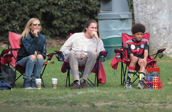 Heidi Klum z chlopakiem oglada dzieci podczas meczu