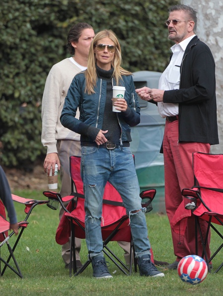 Heidi Klum z chlopakiem oglada dzieci podczas meczu