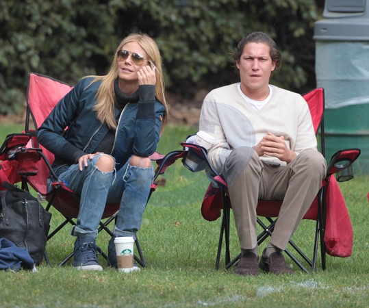 Heidi Klum z chlopakiem oglada dzieci podczas meczu