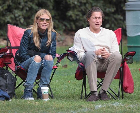 Heidi Klum z chlopakiem oglada dzieci podczas meczu