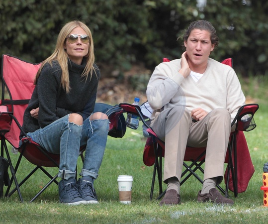 Heidi Klum z chlopakiem oglada dzieci podczas meczu