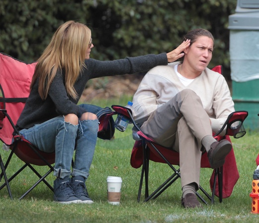 Heidi Klum z chlopakiem oglada dzieci podczas meczu