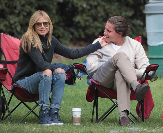 Heidi Klum z chlopakiem oglada dzieci podczas meczu