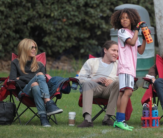 Heidi Klum z chlopakiem oglada dzieci podczas meczu