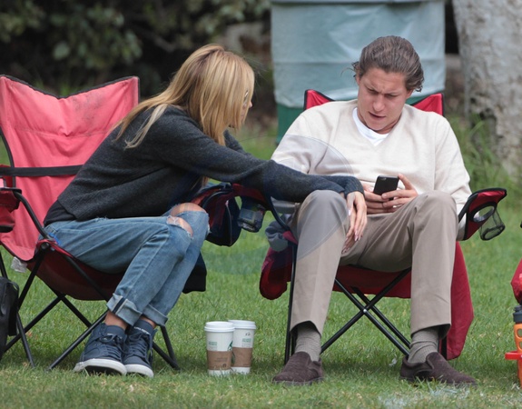 Heidi Klum z chlopakiem oglada dzieci podczas meczu