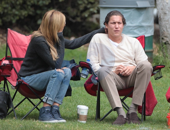 Heidi Klum z chlopakiem oglada dzieci podczas meczu