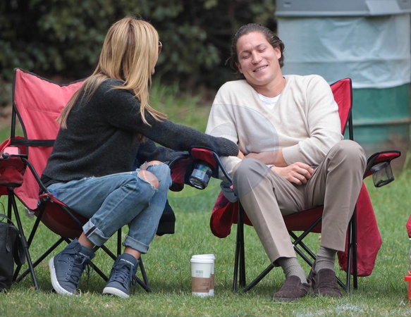 Heidi Klum z chlopakiem oglada dzieci podczas meczu