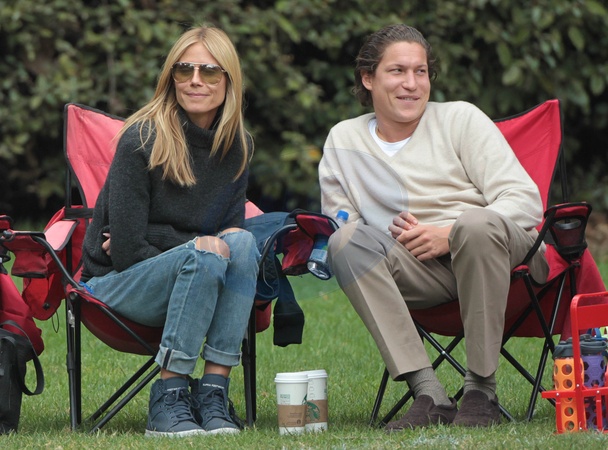 Heidi Klum z chlopakiem oglada dzieci podczas meczu