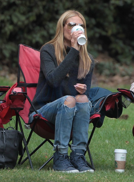 Heidi Klum z chlopakiem oglada dzieci podczas meczu