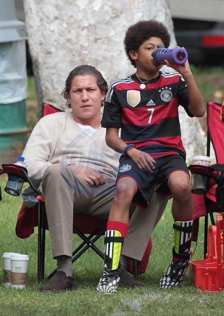 Heidi Klum z chlopakiem oglada dzieci podczas meczu