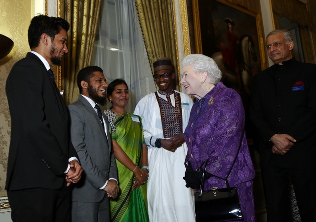 Krolowa Elzbieta wita gosci na przyjeciu z okazji Commonwealth Day