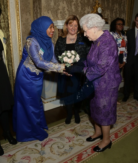 Krolowa Elzbieta wita gosci na przyjeciu z okazji Commonwealth Day
