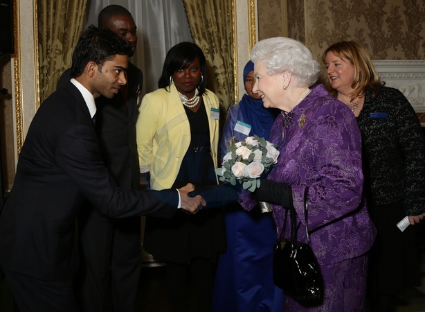 Krolowa Elzbieta wita gosci na przyjeciu z okazji Commonwealth Day