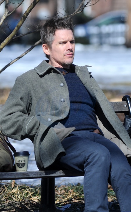 Ethan Hawke i Greta Gerwig na planie Maggie's Plan w Nowym Jorku