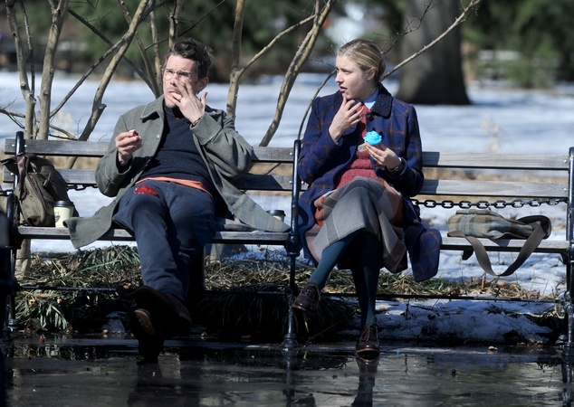 Ethan Hawke i Greta Gerwig na planie Maggie's Plan w Nowym Jorku