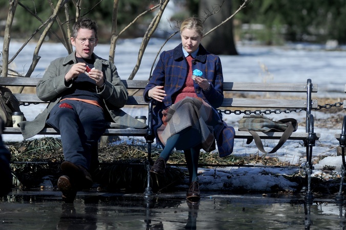Ethan Hawke i Greta Gerwig na planie Maggie's Plan w Nowym Jorku