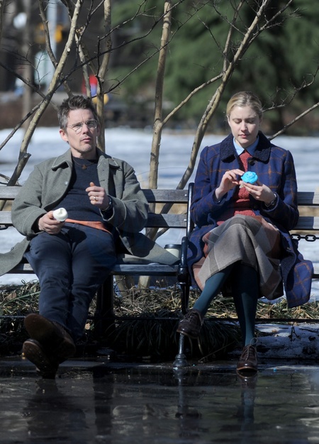 Ethan Hawke i Greta Gerwig na planie Maggie's Plan w Nowym Jorku