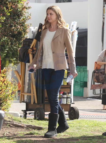 Emily Vankamp na planie serialu Zemsta w Santa Monica
