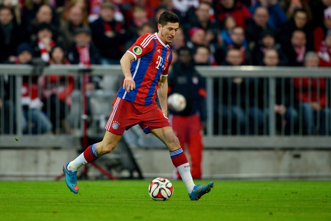 Robert Lewandowski na boisku podczas meczu Bayern Monachium kontra Eintracht Brunszwik