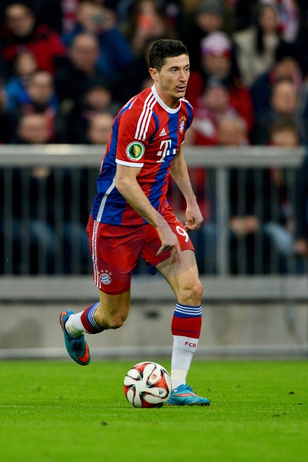 Robert Lewandowski na boisku podczas meczu Bayern Monachium kontra Eintracht Brunszwik