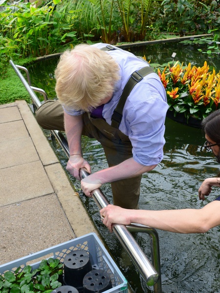 Boris Johnson sadzi rosliny w ogrodzie botanicznym