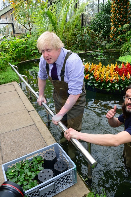 Boris Johnson sadzi rosliny w ogrodzie botanicznym