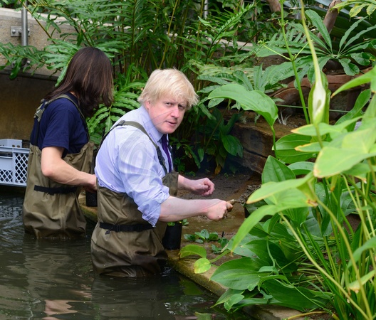 Boris Johnson sadzi rosliny w ogrodzie botanicznym