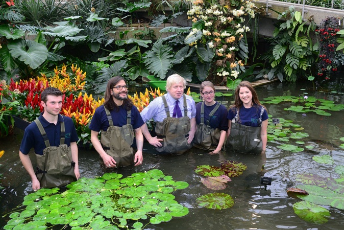 Boris Johnson sadzi rosliny w ogrodzie botanicznym