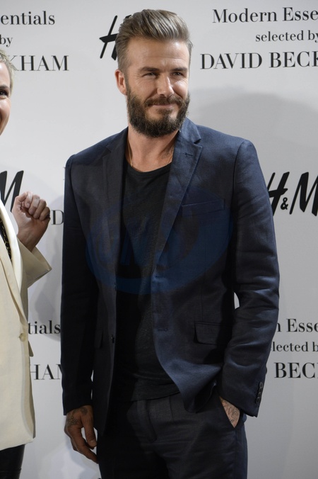 Zarosniety David Beckham promuje swoja najnowsza kolekcje H&M w Madrycie