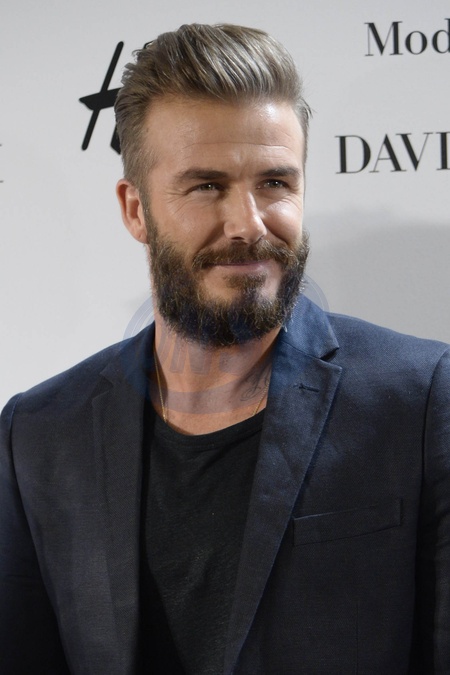 Zarosniety David Beckham promuje swoja najnowsza kolekcje H&M w Madrycie