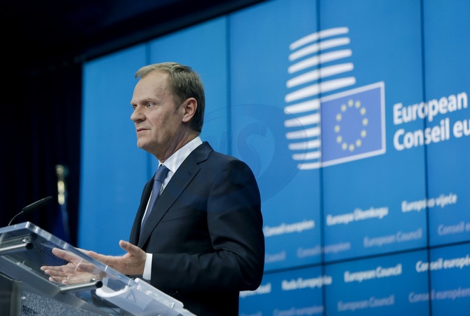 Donald Tusk i Jean-Claude Juncker podczas Szczytu UE